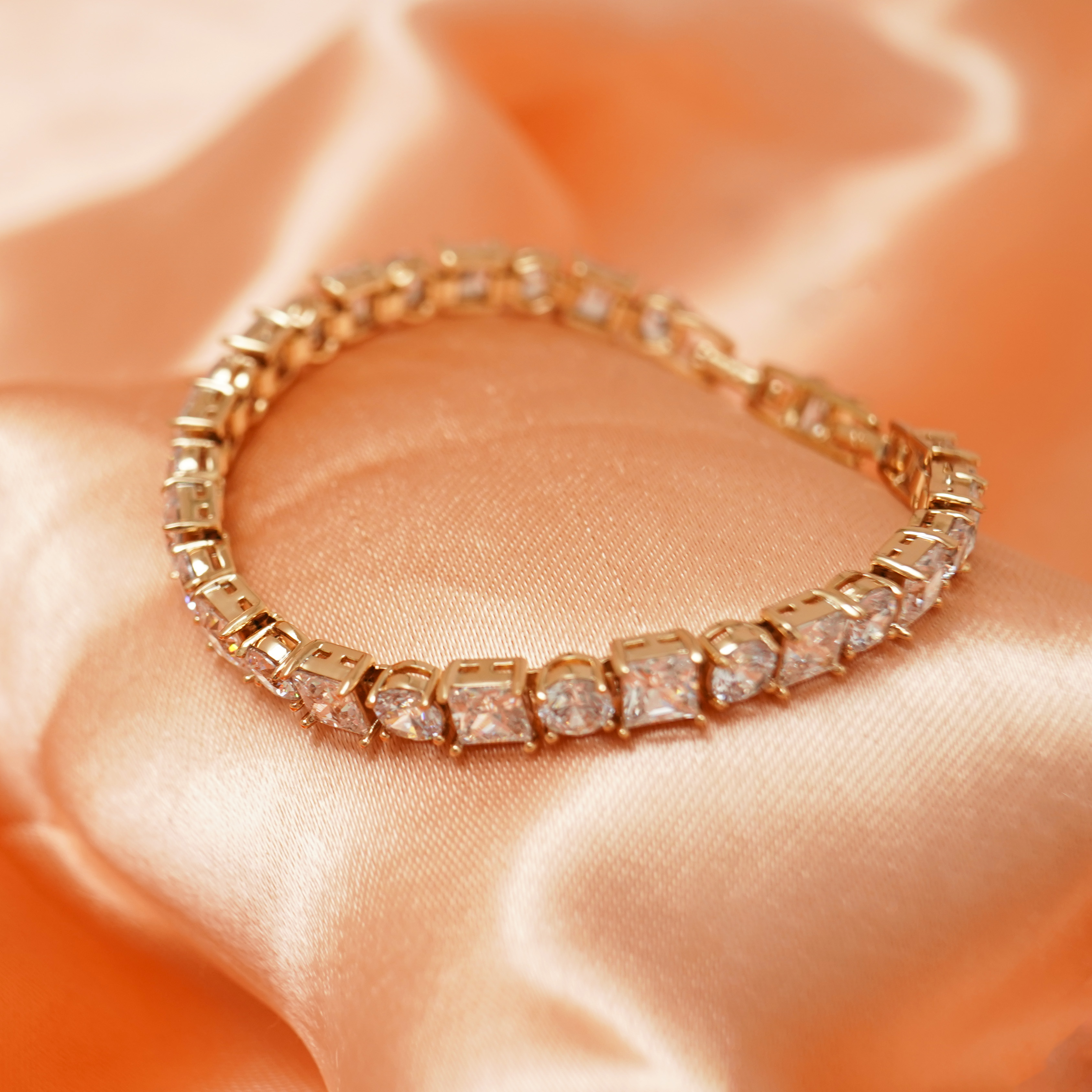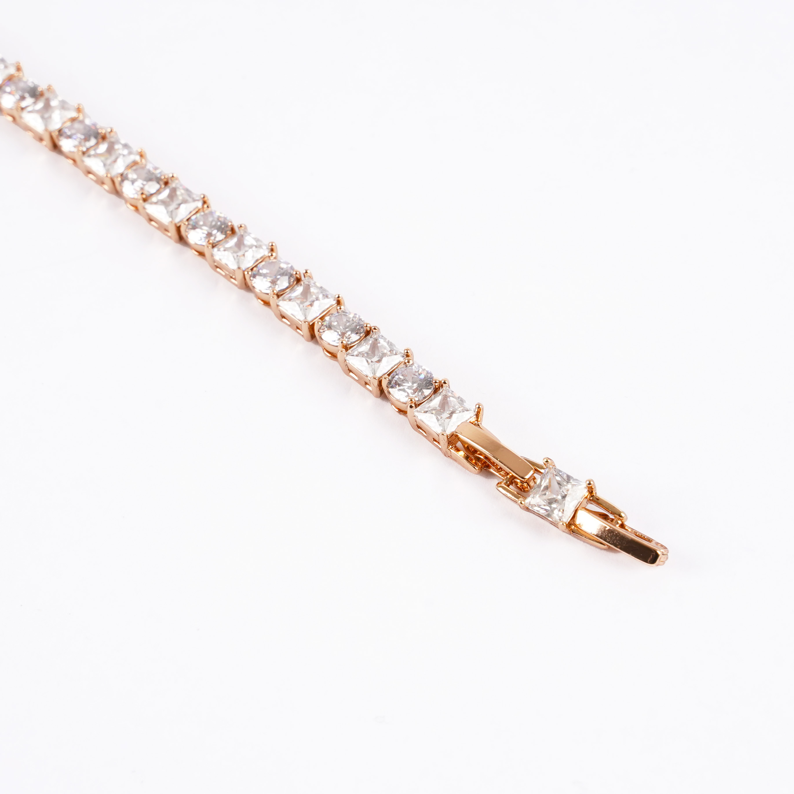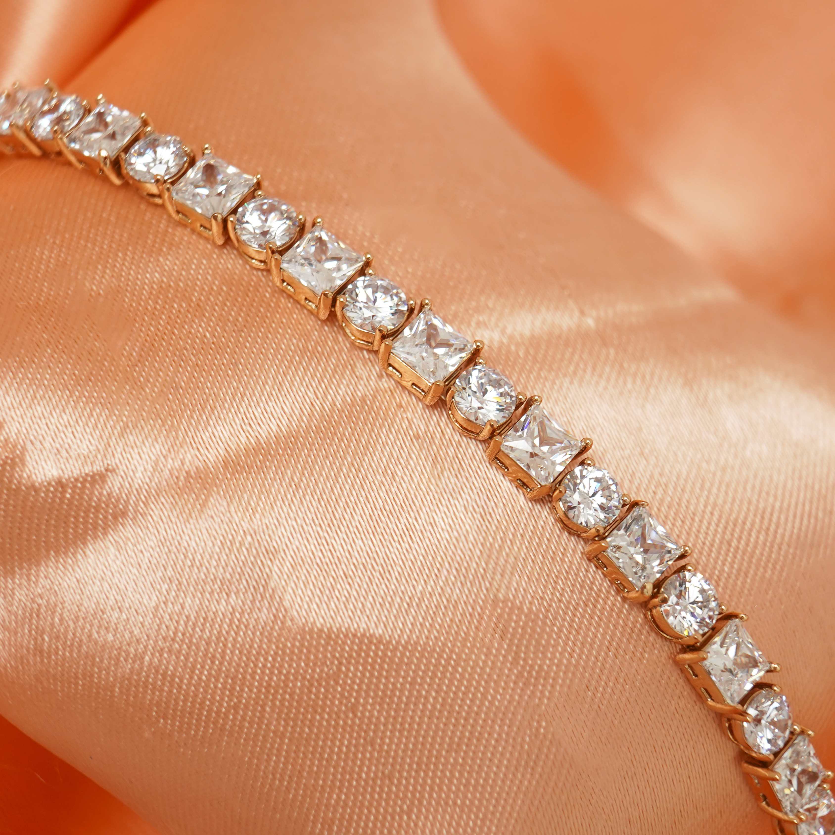 Klasik Rose Gold Sarısı Tennis Bilezik - Karma Kesim Taş
