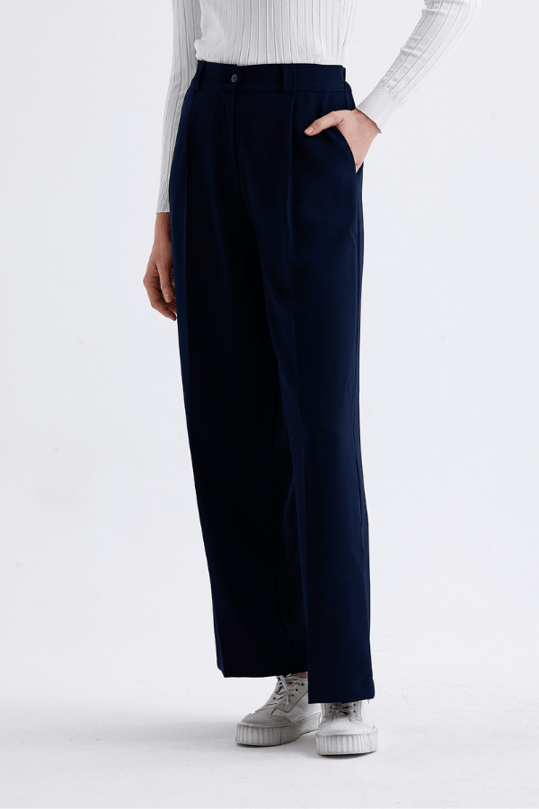 Palazzo Krep Pantolon Lacivert