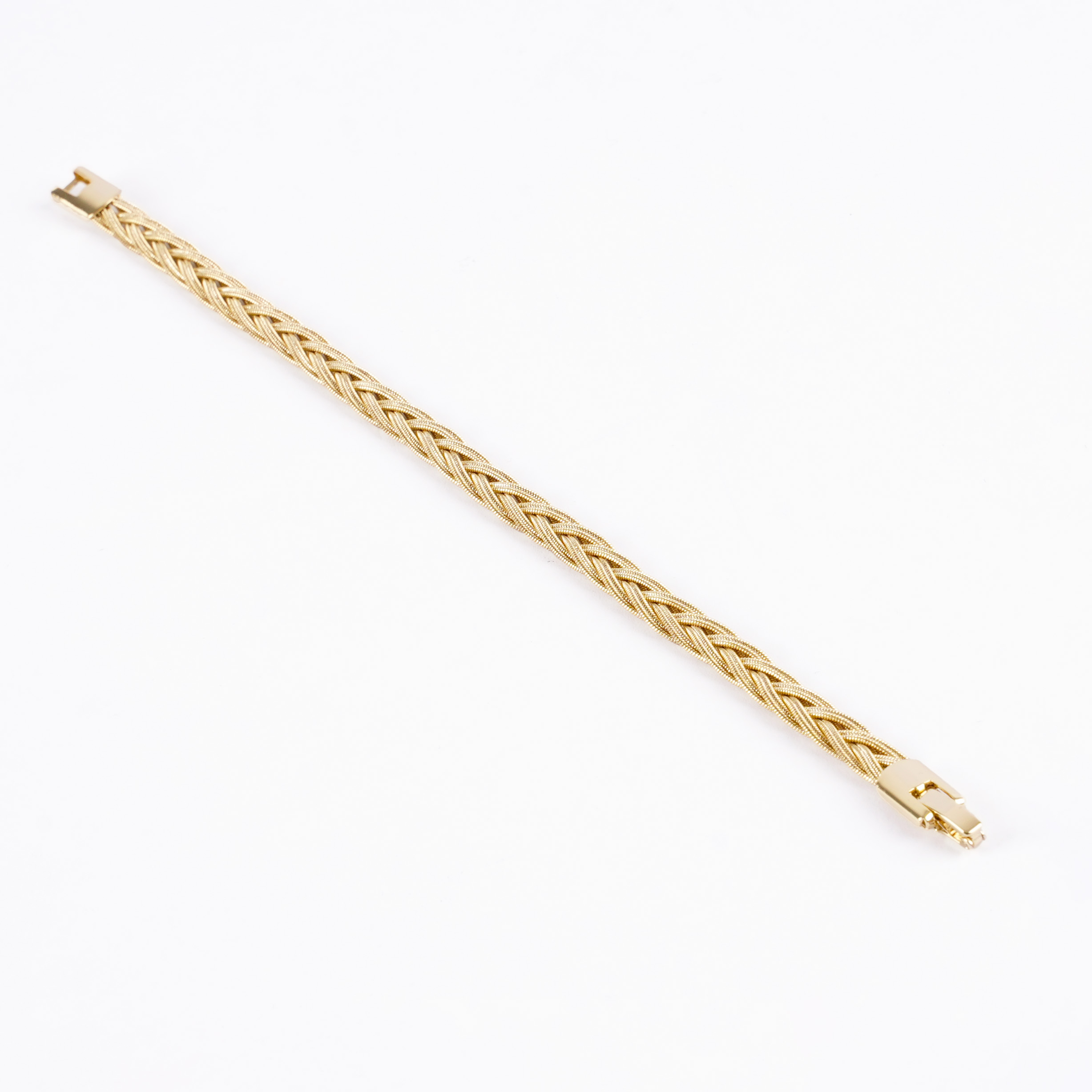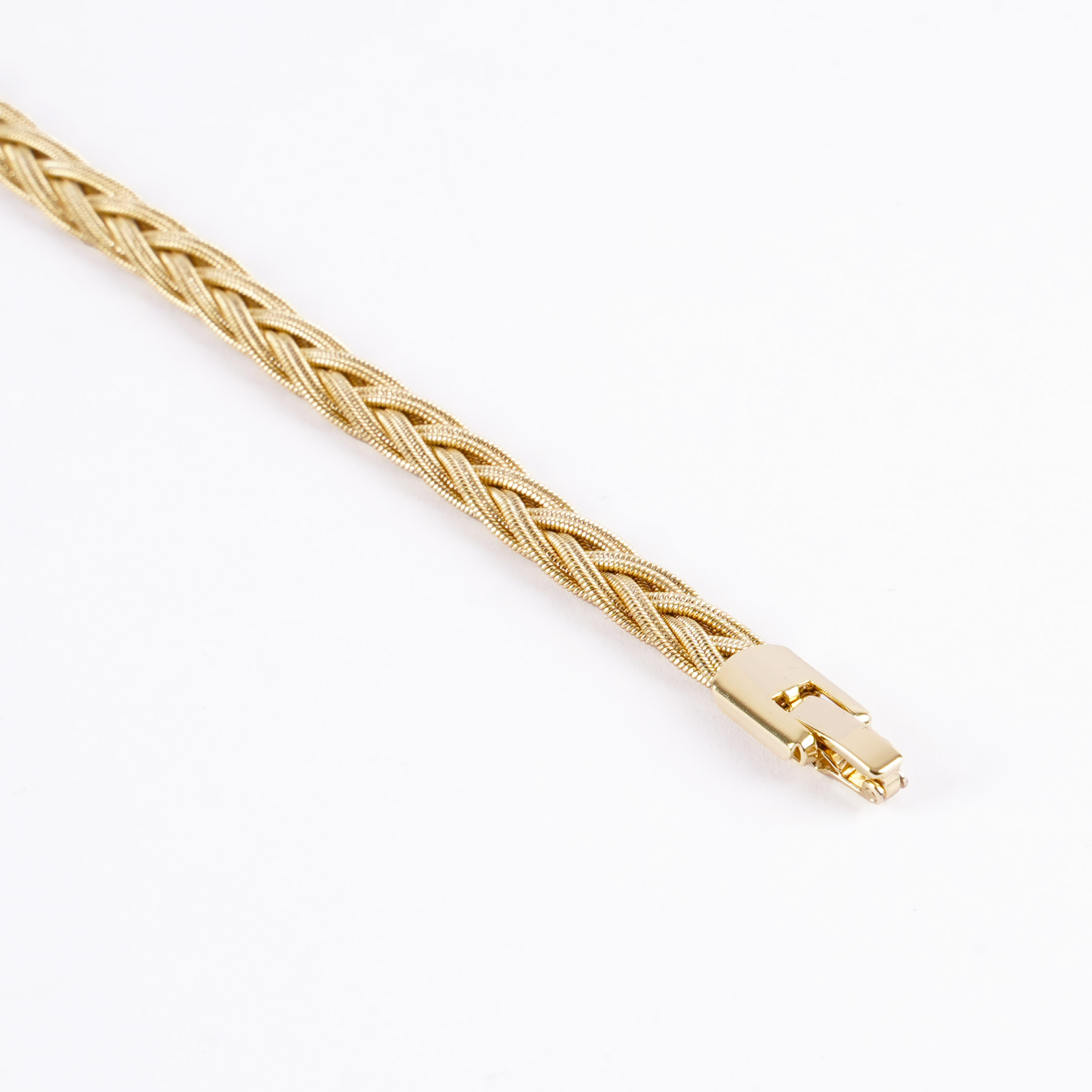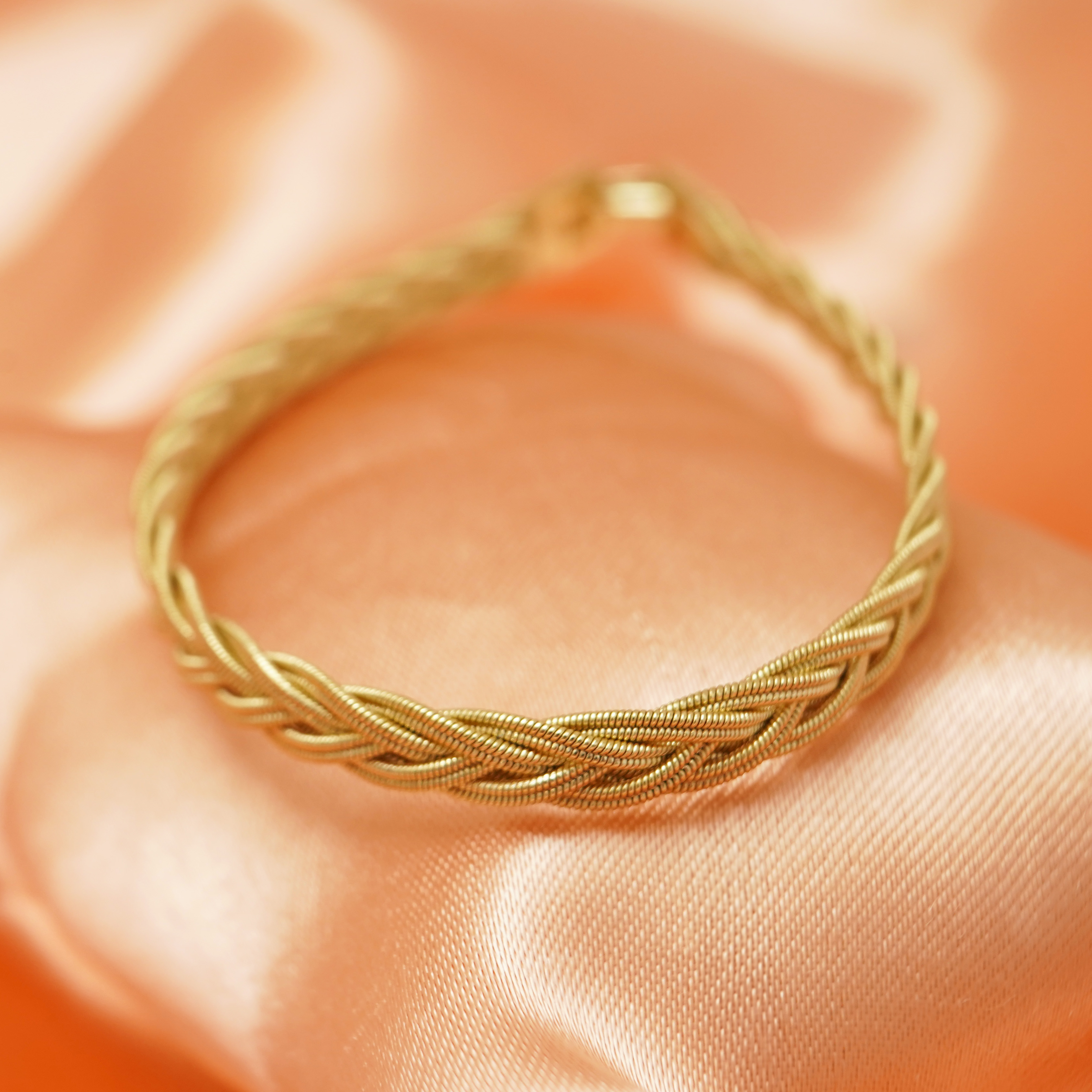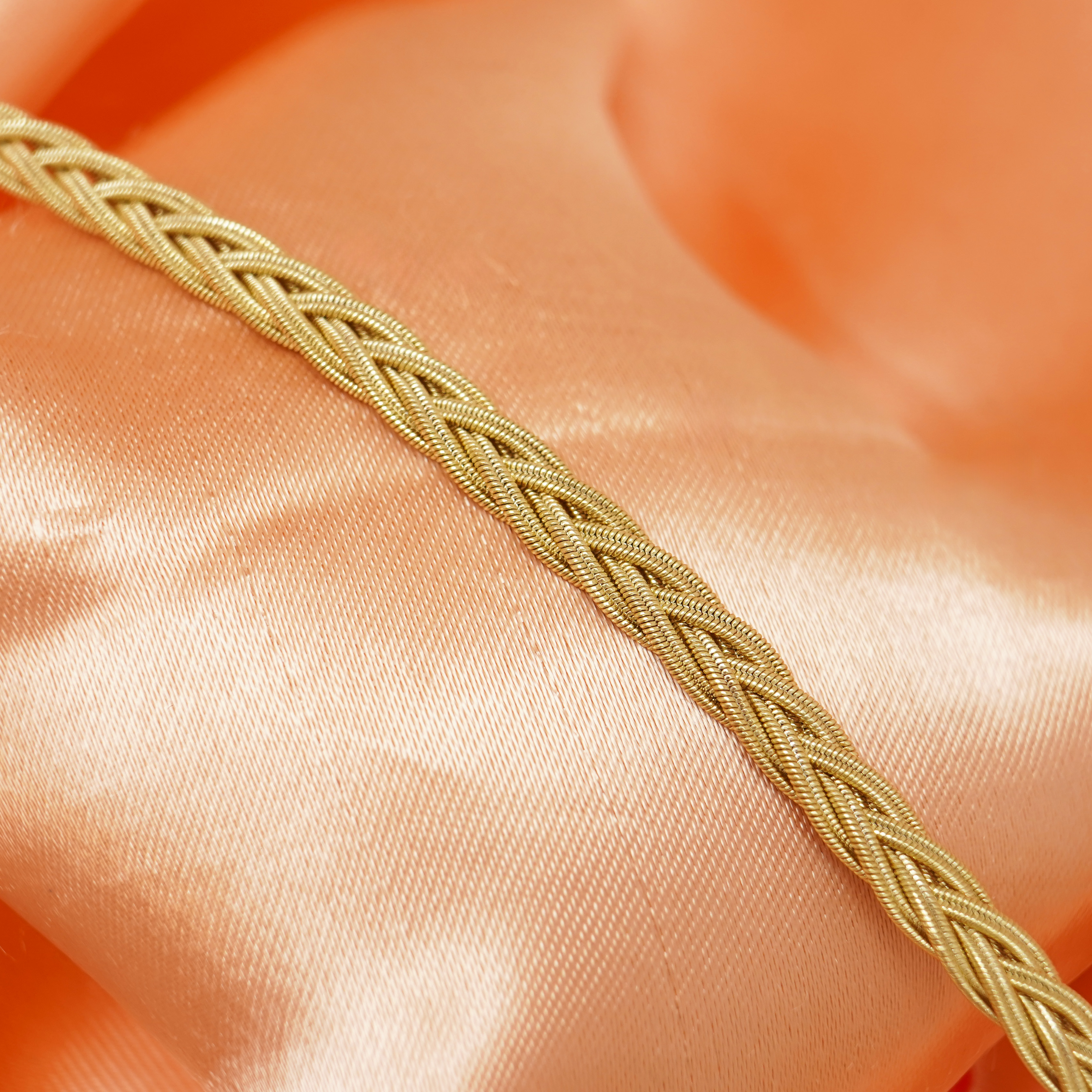 Geleneksel örgü sanatından ilham alan bu sofistike bilezik, zamansız zarafeti modern tasarımla buluşturuyor. Her detayında işçilik kalitesi görülen örgü deseni, ışığı mükemmel şekilde yansıtarak el bileğinizde büyüleyici bir parlaklık yaratır. Güvenli kapatma sistemi ile günlük kullanımda rahatlık ve güvenlik sağlar.